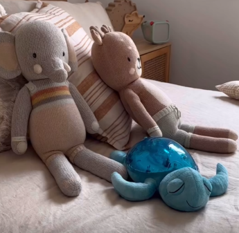 Ce doudou tout doux n’est pas un simple peluche : il diffuse des sons relaxants et une lumière réconfortante pour apaiser les petits au moment du coucher. Une présence rassurante qui aide à créer une atmosphère propice au sommeil.