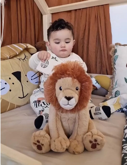 Quand le petit doudou Louis lion 🦁 de chez @cloudb🫶 prend soin de Elian 👶 pendant son sommeil !.Il est véritablement magnifique, tout doux , ludique est super beau 😍