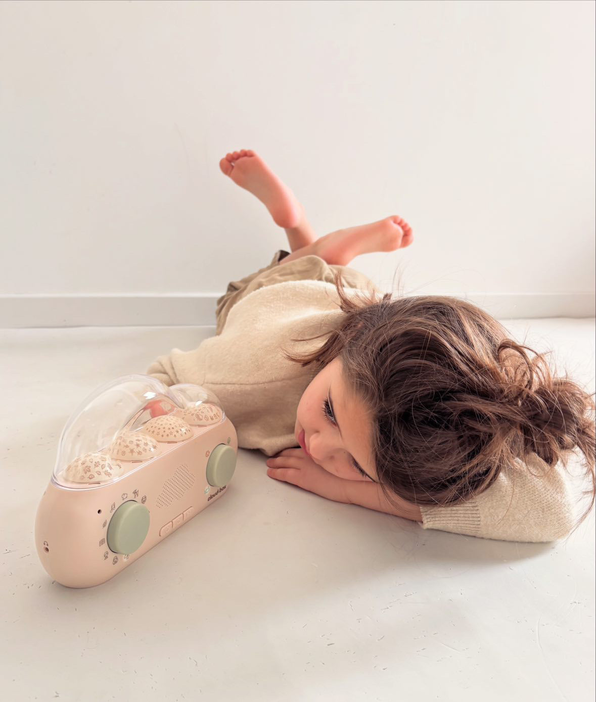 Ce doudou tout doux n’est pas un simple peluche : il diffuse des sons relaxants et une lumière réconfortante pour apaiser les petits au moment du coucher. Une présence rassurante qui aide à créer une atmosphère propice au sommeil.